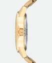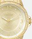 Kit Relógio feminino mini, com sistema analógico indicando as horas, minutos e segundos. Caixa em metal vidro em cristal mineral e botões para ajuste de horas. Mostrador personalizado com indicadores ponteados e númericos. Pulseira em aço com fechamento por botão lateral com fecho dobrável.