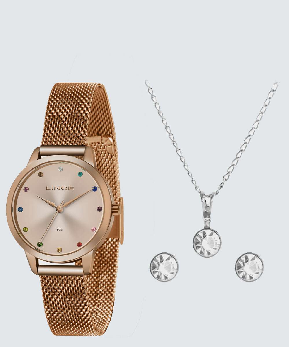 Kit Relógio Feminino Strass Lince LRR4702L KO28R1RX