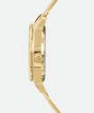 Kit Relógio feminino mini, com sistema analógico indicando as horas, minutos e segundos. Caixa em metal vidro em cristal mineral e botões para ajuste de horas. Mostrador personalizado com indicadores tracejedos e númericos. Pulseira em aço com fechamento por gancho.