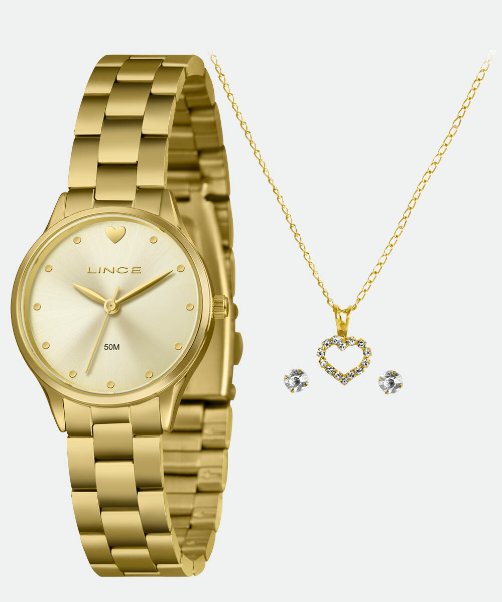 Kit Relógio Feminino Lince LRGH258L33 KAF2C1KX Dourado