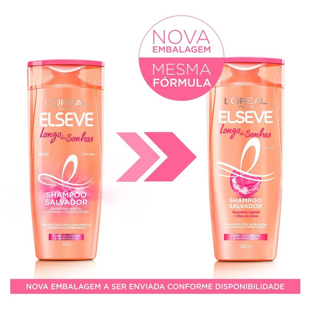 O Shampoo Salvador Elseve Longo dos Sonhos é ideal para quem tem cabelos compridos, danificados e deseja acabar com as pontas duplas. O Shampoo Salvador Elseve Longo dos Sonhos conta com um coquetel de Queratina Vegetal, Vitaminas e Óleo de Rícino. • Preenche e recupera as áreas fragilizadas por toda a extensão do cabelo e sem pesar.• Deixa o cabelo super macio e com um brilho arrasador.• Salva seus últimos 3cm, acabando com as pontas duplas e evitando o corte.