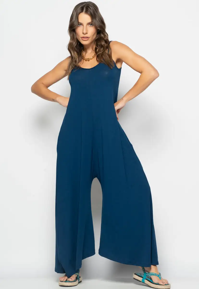 Macacão Alcinha Pantalona Malha Marinho Salvatore