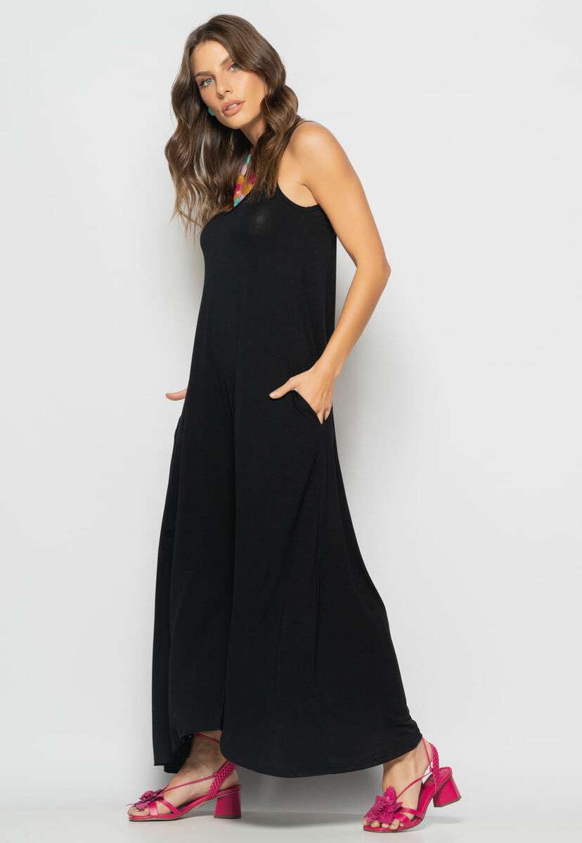 Macacão Alcinha Pantalona Malha Preto Salvatore
