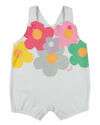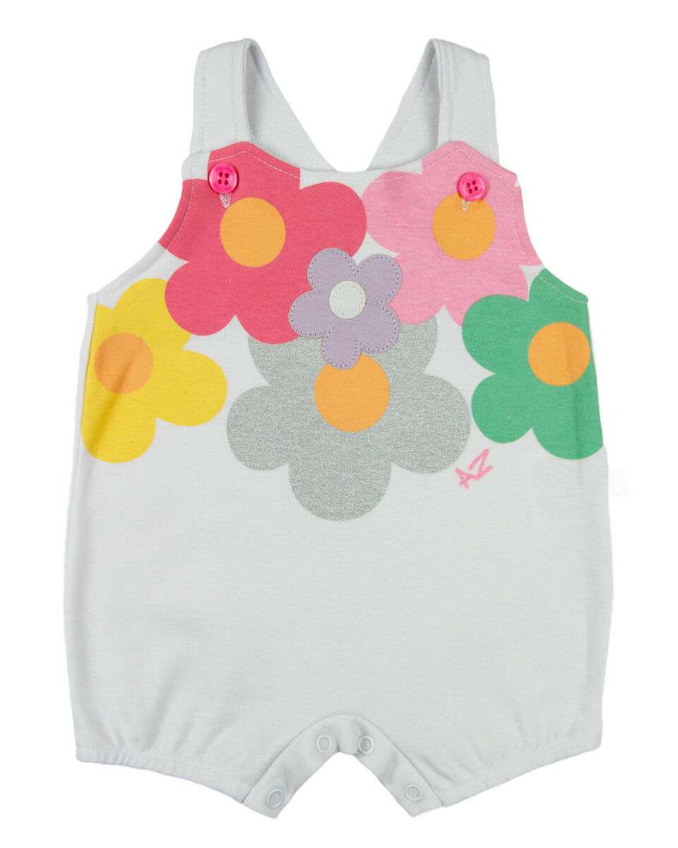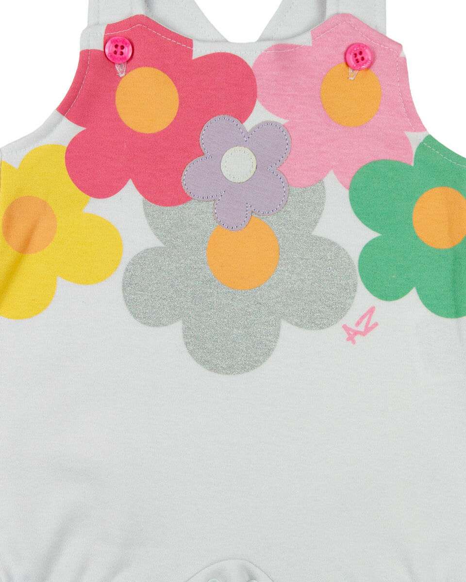 Macacão Bebê Menina Banho de Sol Suedine Sem Manga Silk Screen Flores - Branco