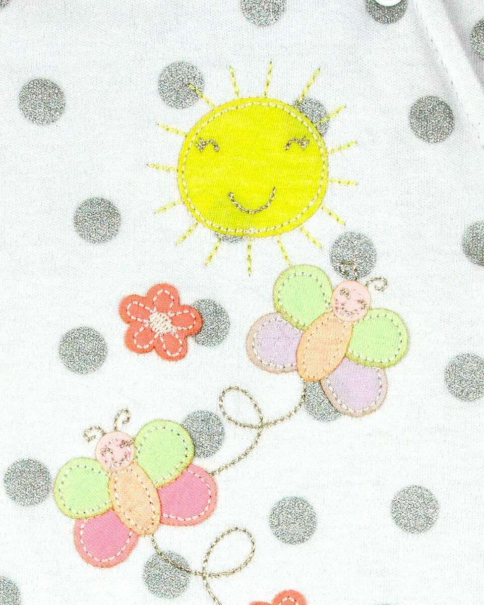 Esse modelo possui detalhe de aplicações bordadas na frente, mas tem o acabamento de forração interna que protege a pele delicada da sua bebê evitando irritações ou alergias.