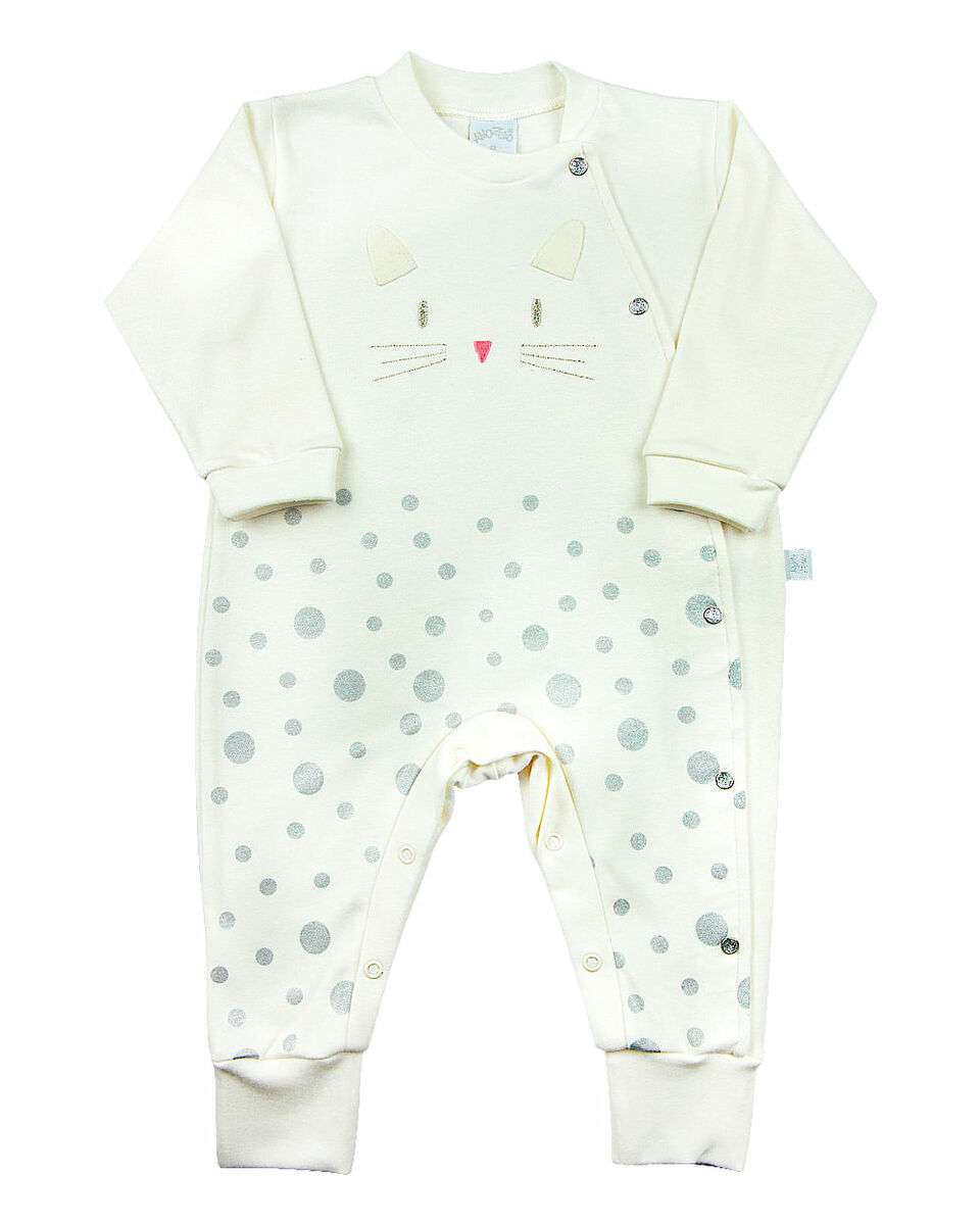 Macacão Bebê Suedine Gatinho com Bolinhas - Natural