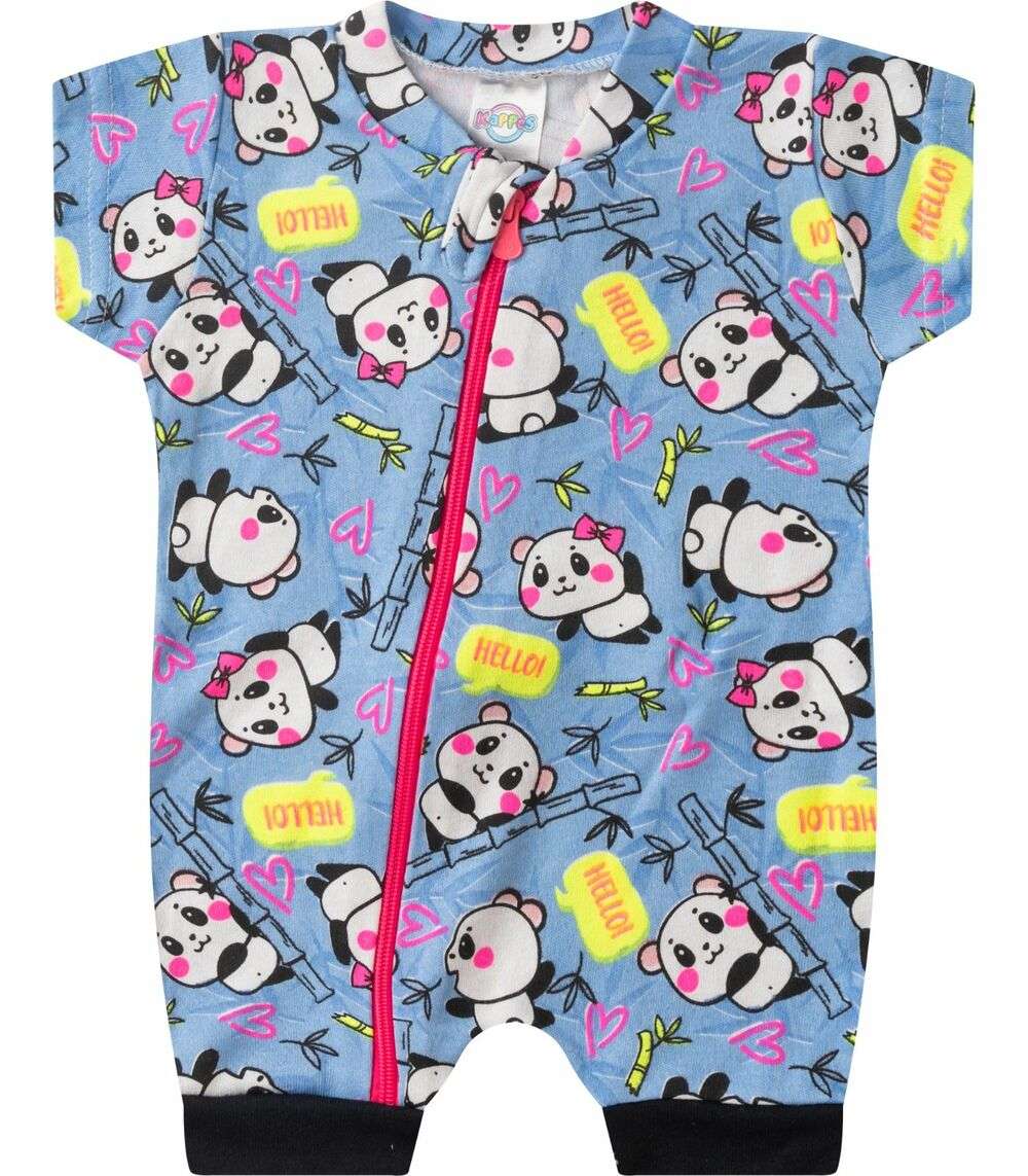 Macacão Bebe Curto Com Zíper Suedine Kappes Azul