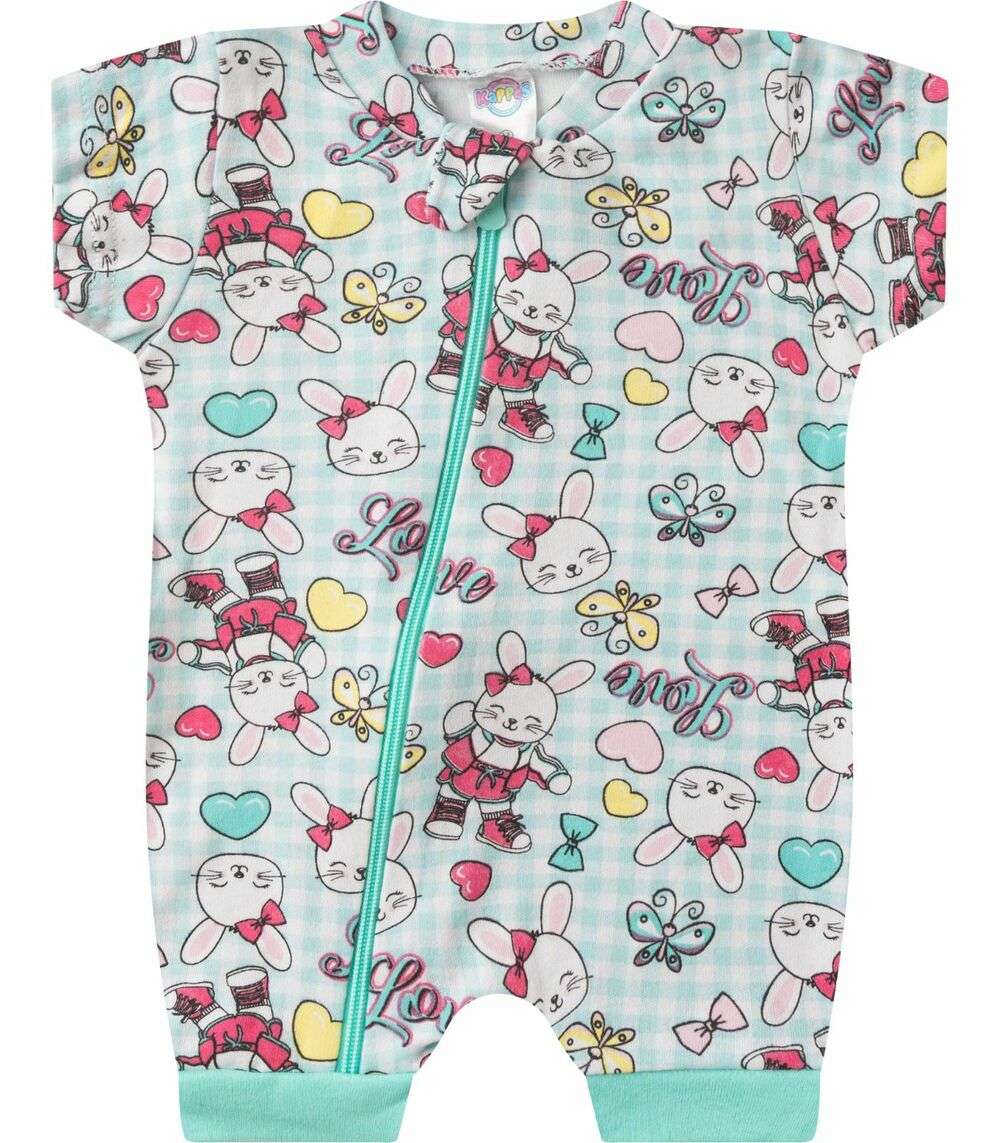 Macacão Bebe Curto Com Zíper Suedine Kappes Verde