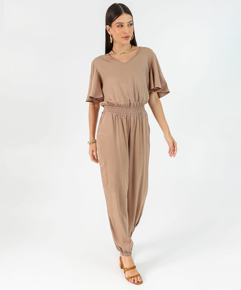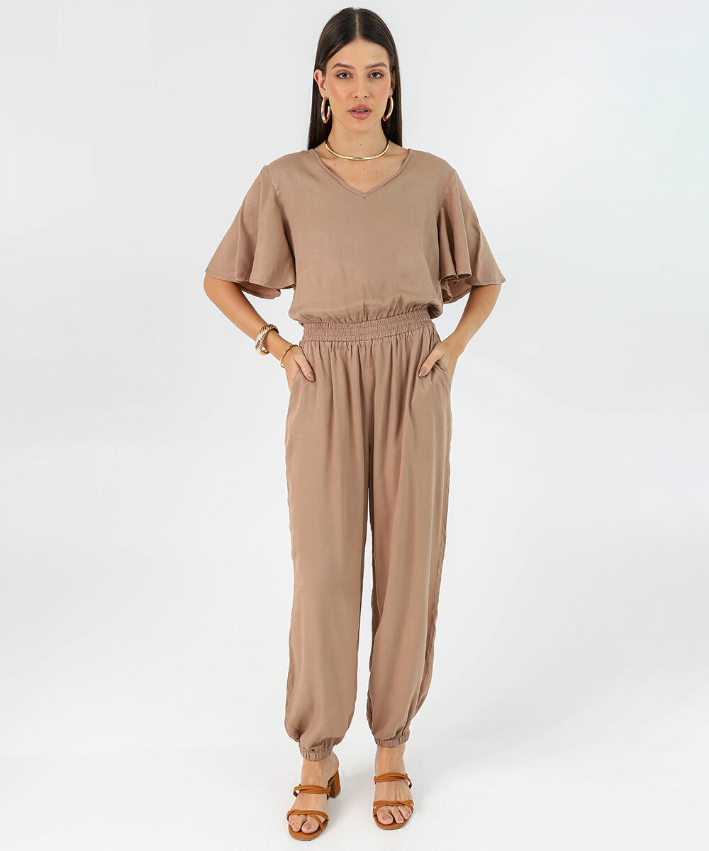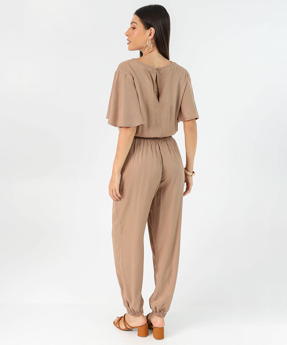 Macacão Feminino Jogger Manga Curta Marisa Marrom