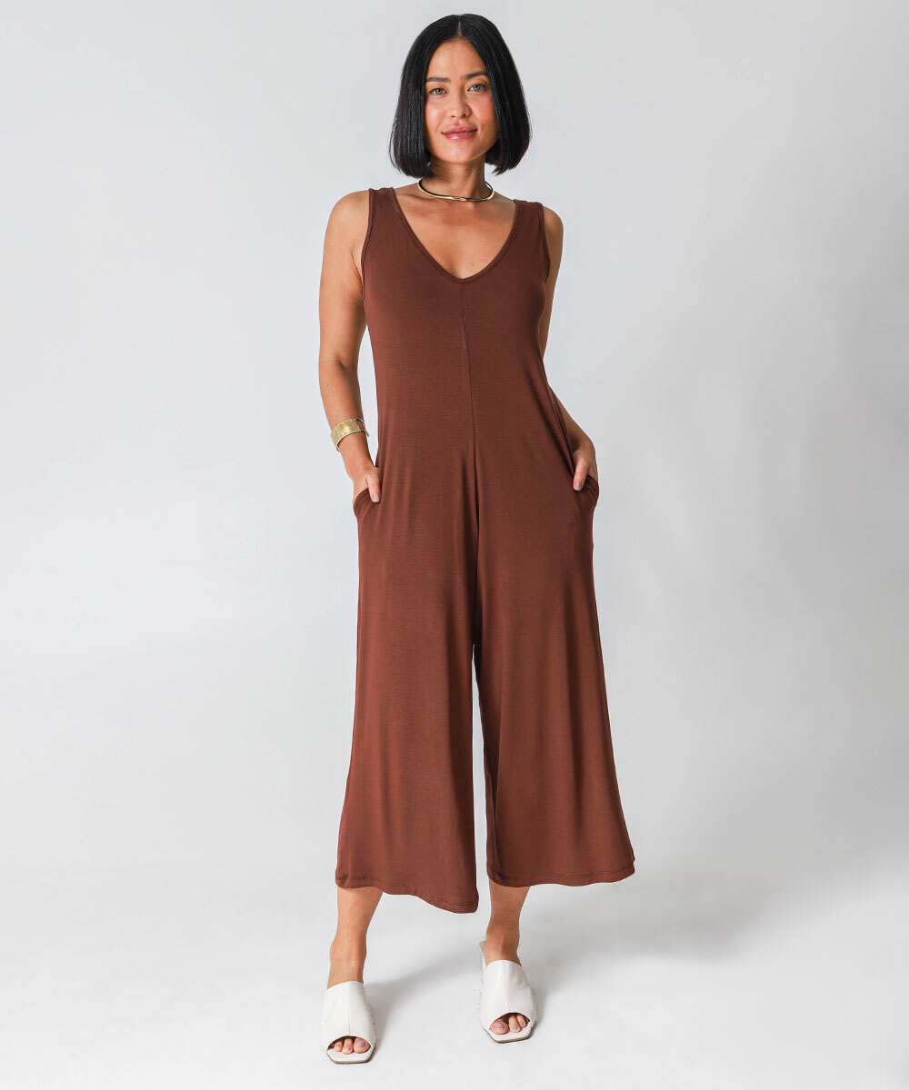 Macacão Feminino Pantacourt Alças Largas Marisa Marrom