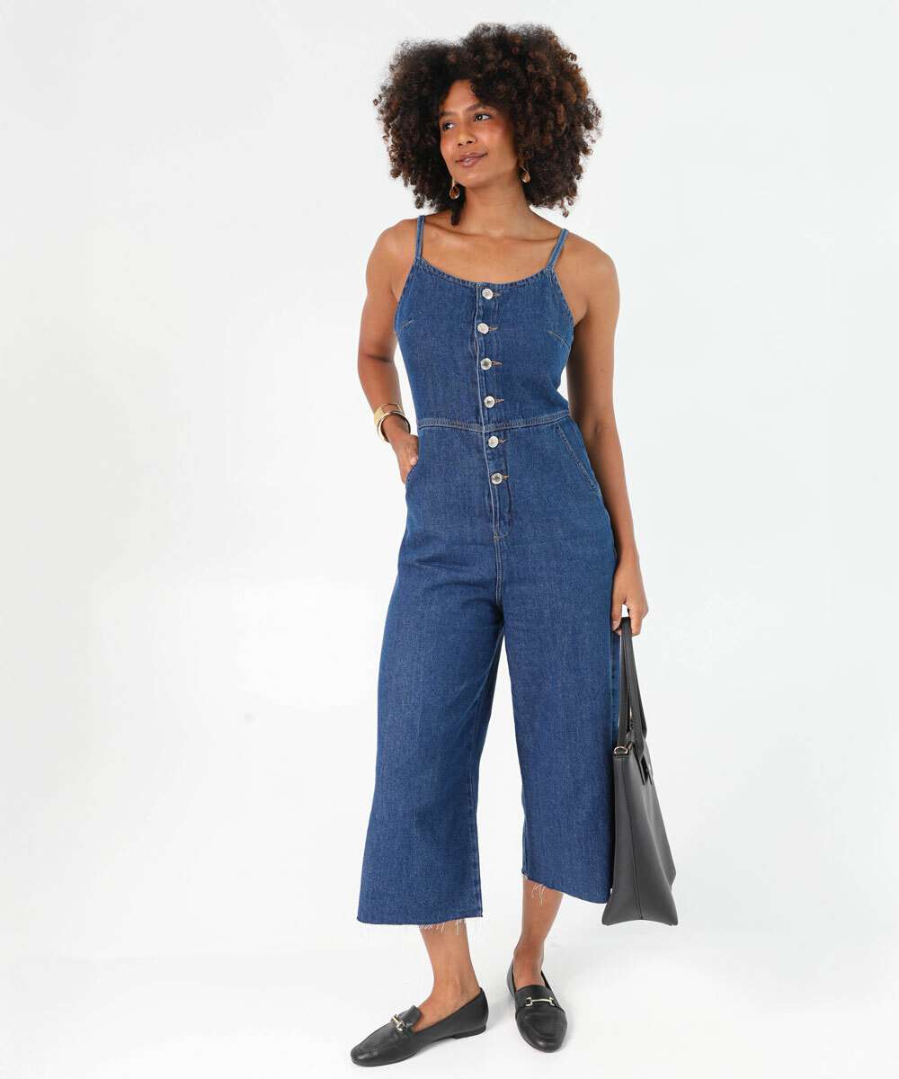 Macacão Feminino Pantacourt Jeans Alças Finas Marisa Azul