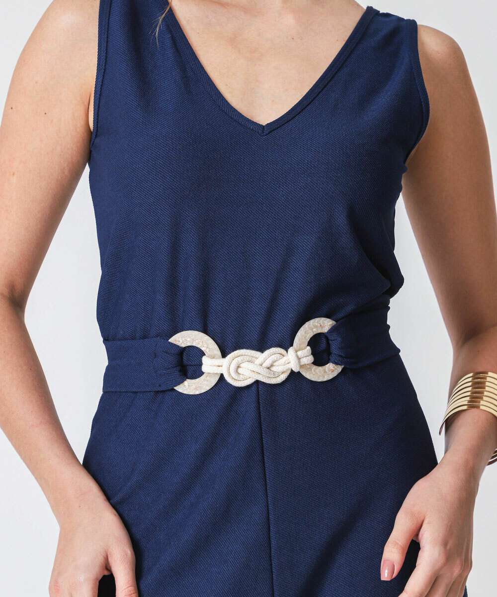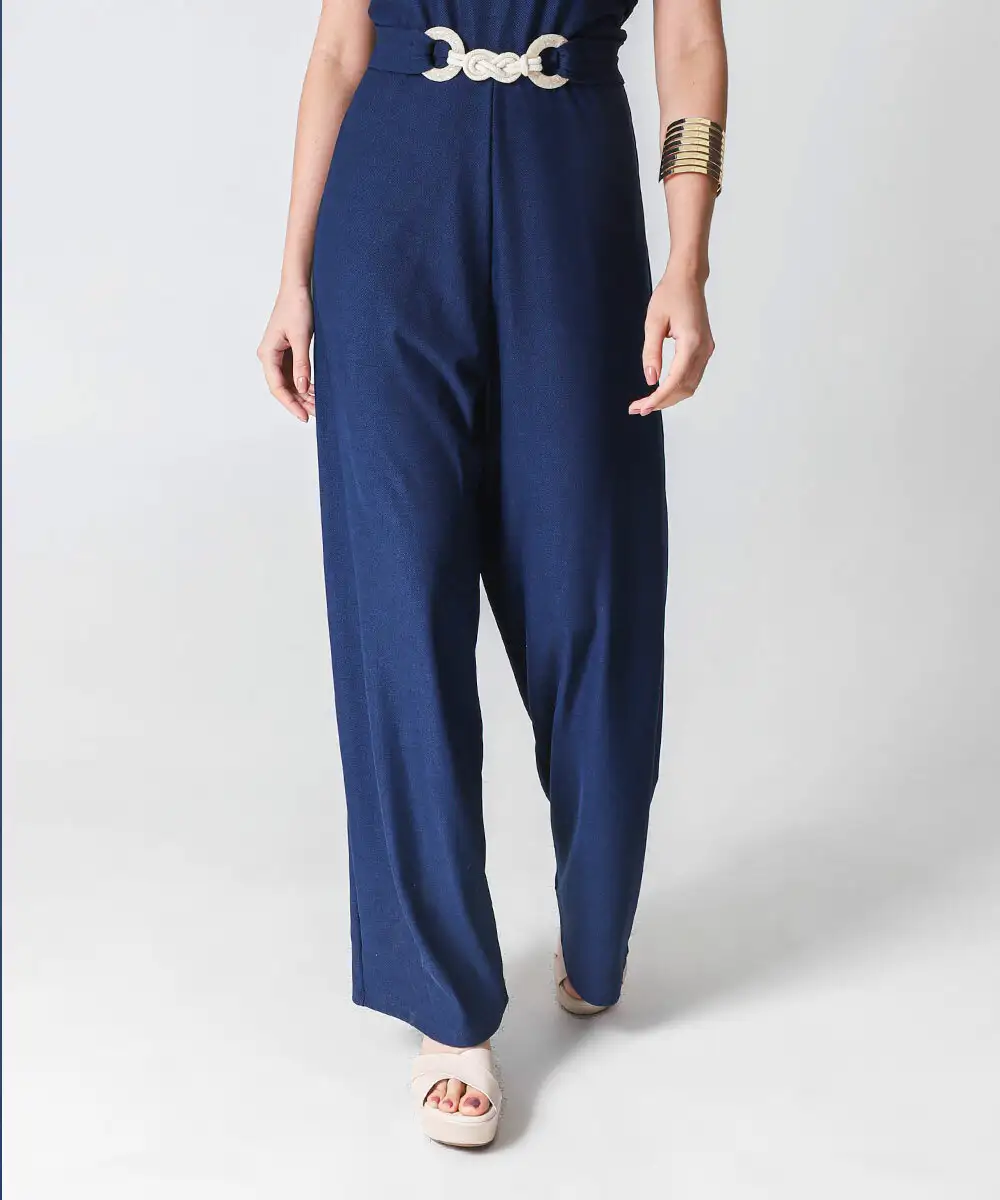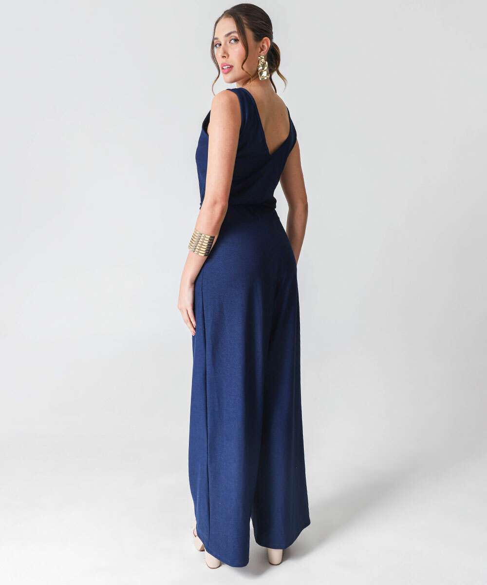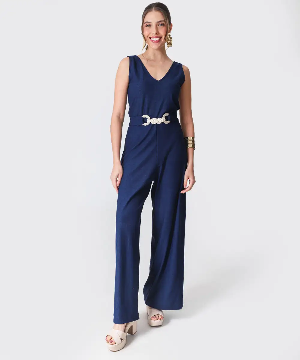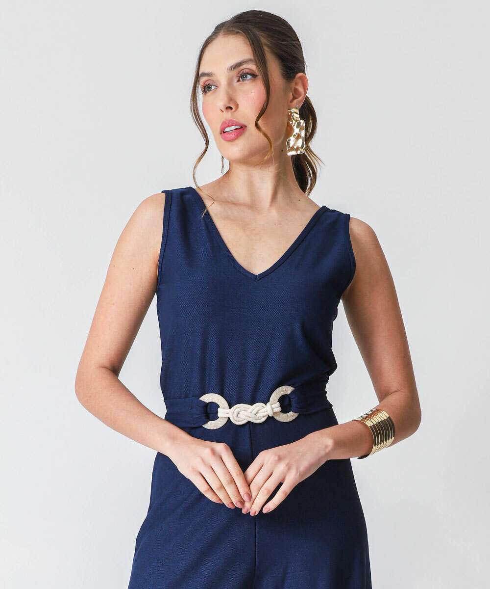 Macacão Feminino Pantalona Cinto Marisa Azul