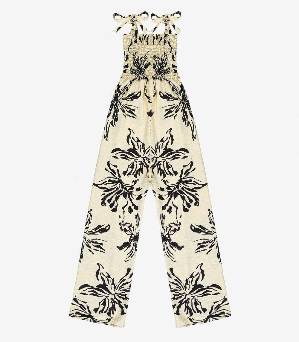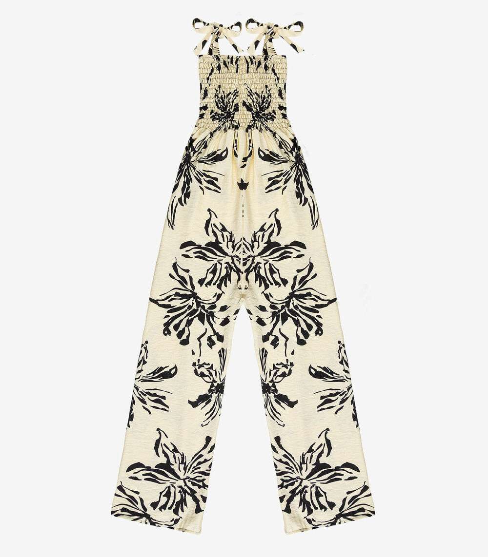 Macacão Longo Feminino De Lastex Estampado Select Bege