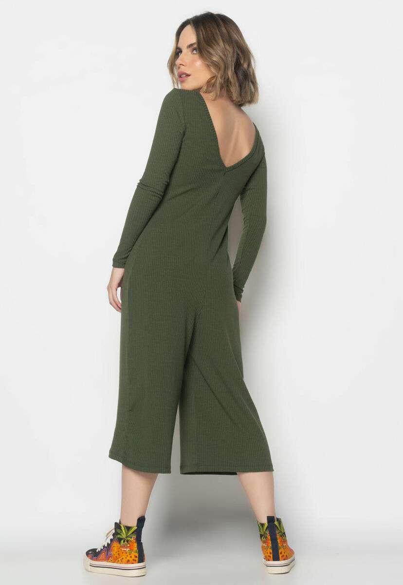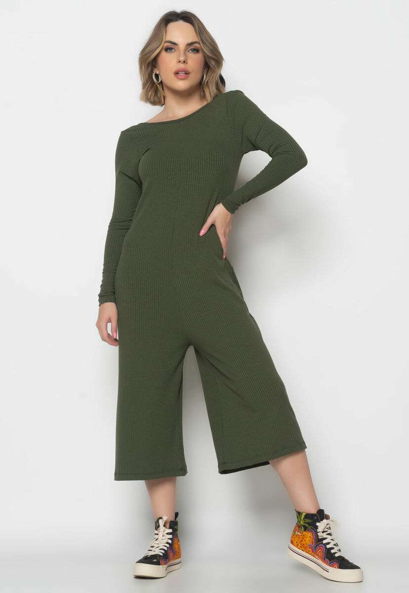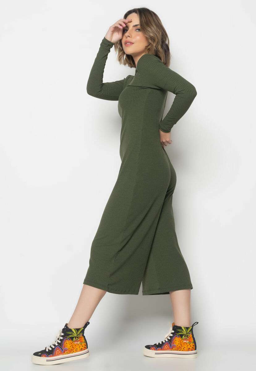 Macacão Manga Longa Pantacourt Canelado Verde Salvatore Fashion