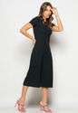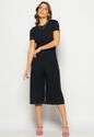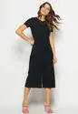 Macacão Pantacourt Manga Curta Costas Em V Canelado Preto Salvatore