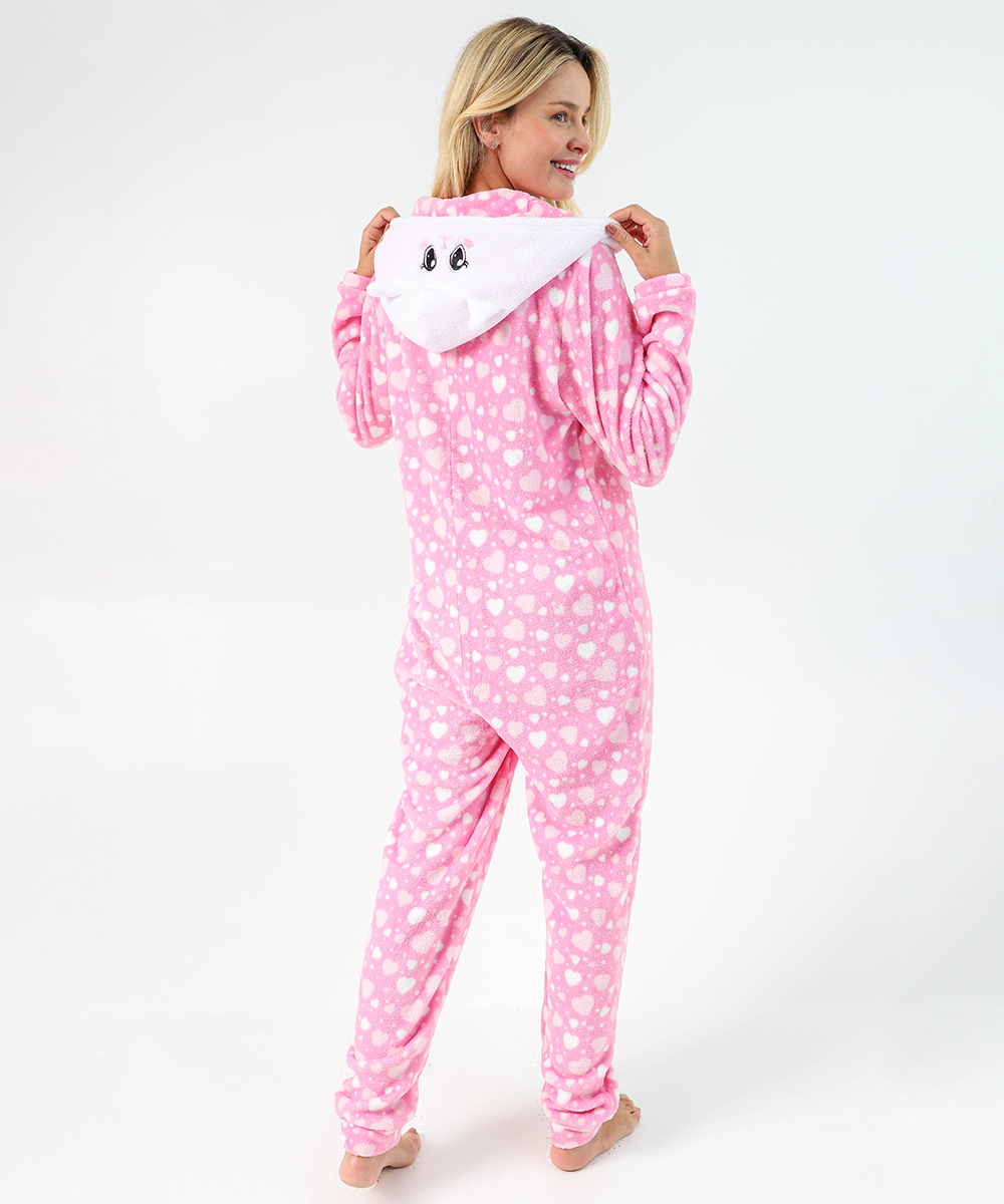 Detalhes: pijama feminino plush, macacão pijama feminino, pijama inverno feminino, pijama rosa feminino, pijama quentinho feminino, pijama de frio feminino, macacão de dormir feminino