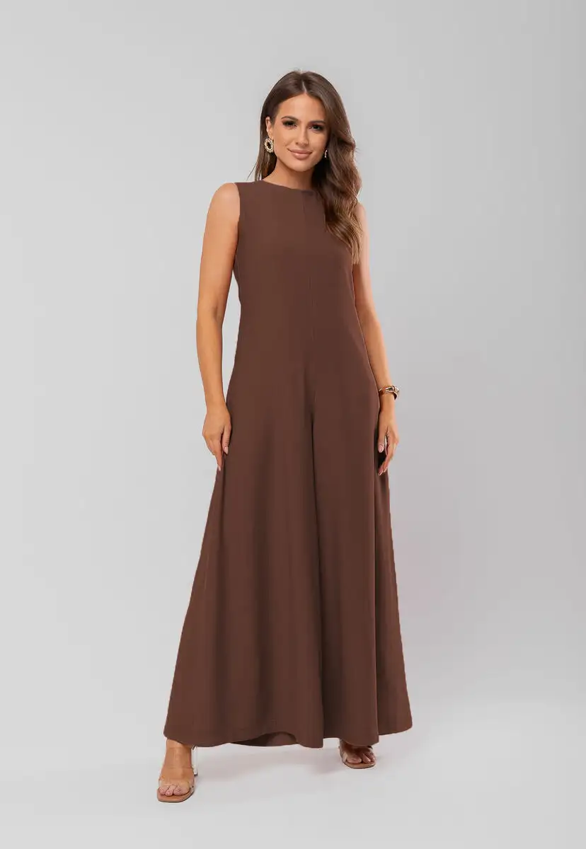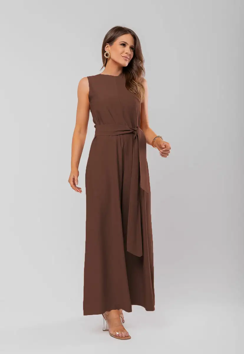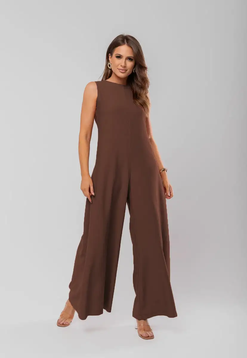 Macacão Regata Feminino Alfaiataria Pantalona Marrom Salvatore Fashion