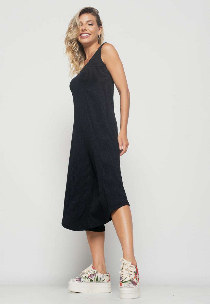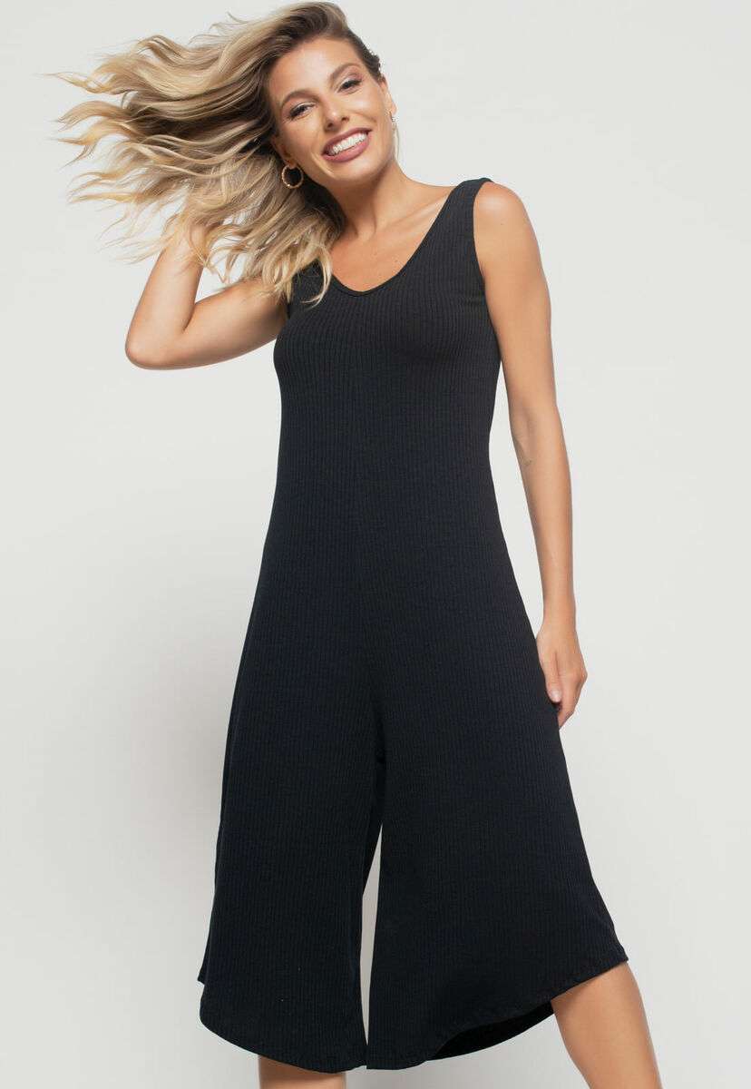 Macacão Regata Pantacourt Canelado Preto