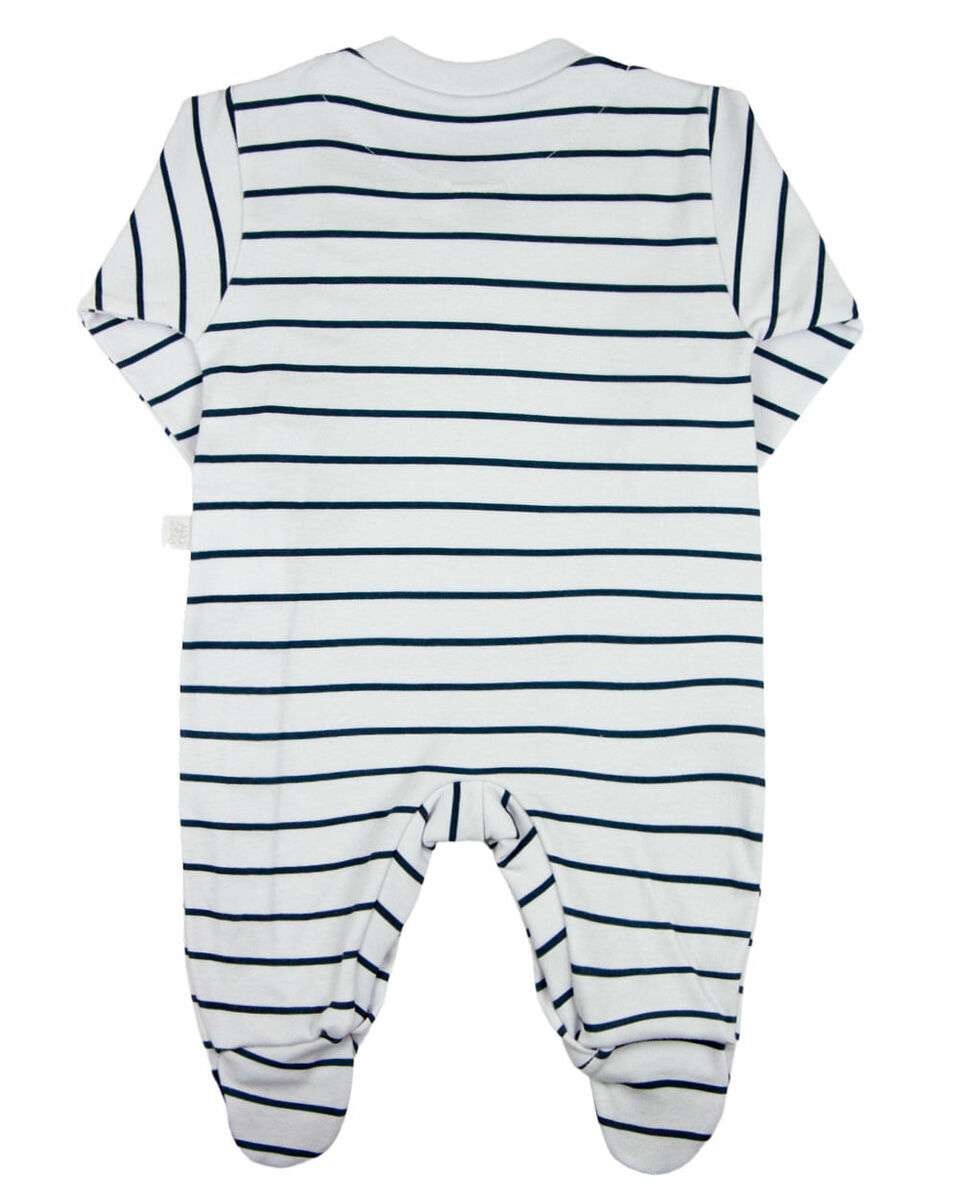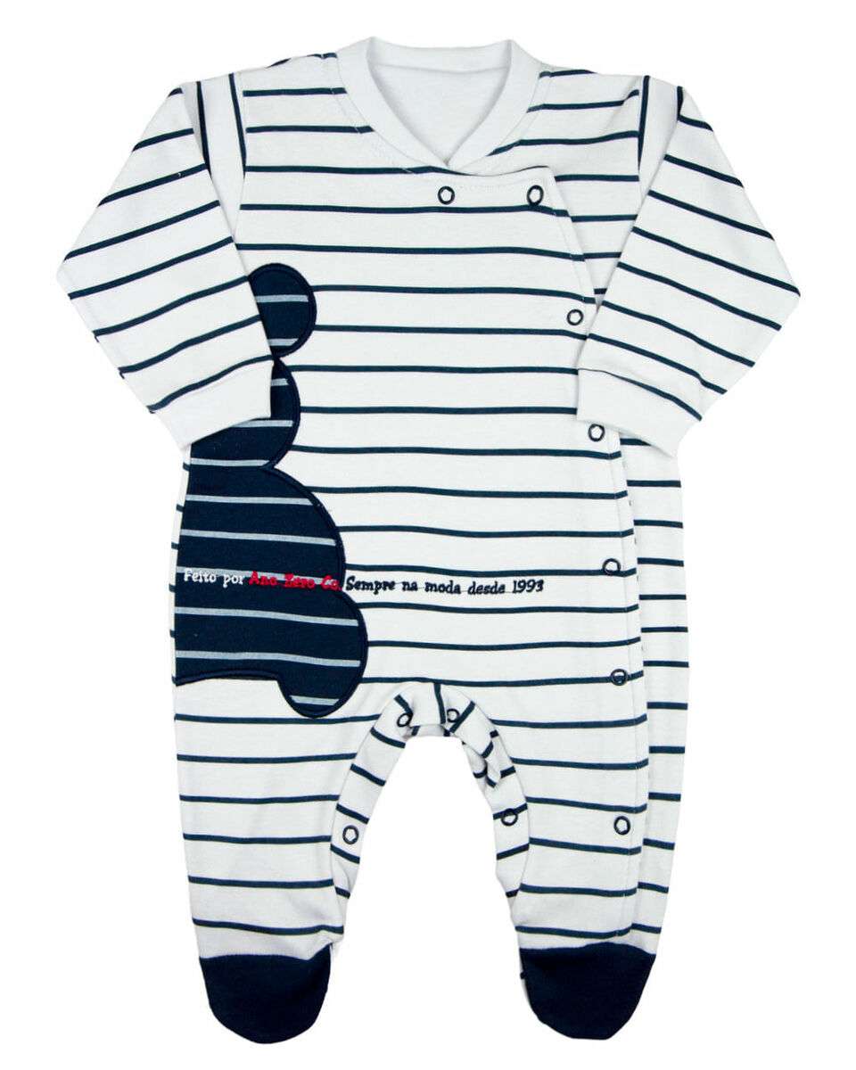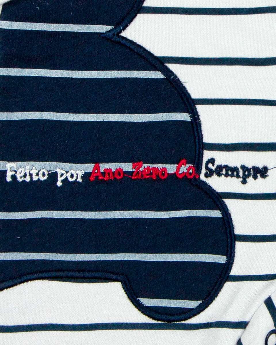 Mas o que realmente distingue este macacão é a estampa encantadora. A estampa listrada da malha é feita com tinta à base d'água, ecologicamente correta, que não prejudica o meio ambiente. Além disso, os detalhes bordados são realçados com aplicações e uma forração interna antialérgica, garantindo que nada irrite a pele sensível do seu bebê.