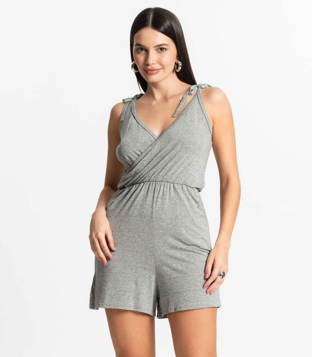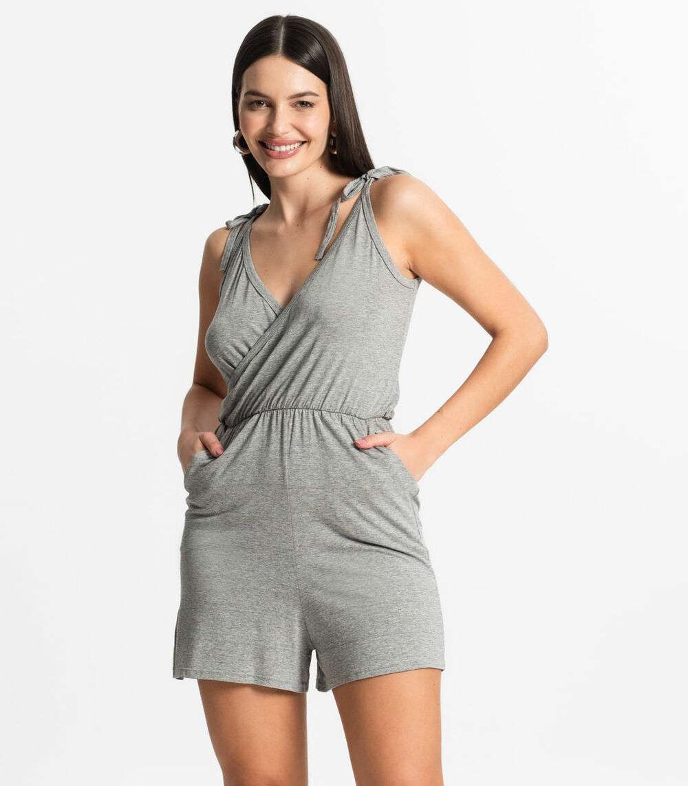 Macaquinho Feminino Curto e Amarração Bella Sangos Cinza