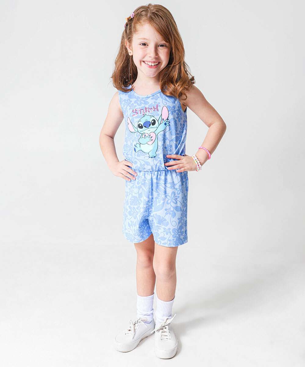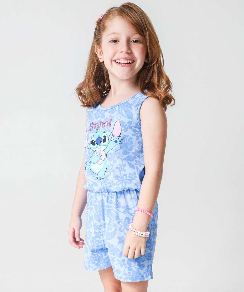 Macaquinho Infantil Stitch Tam 4 a 10 Azul
