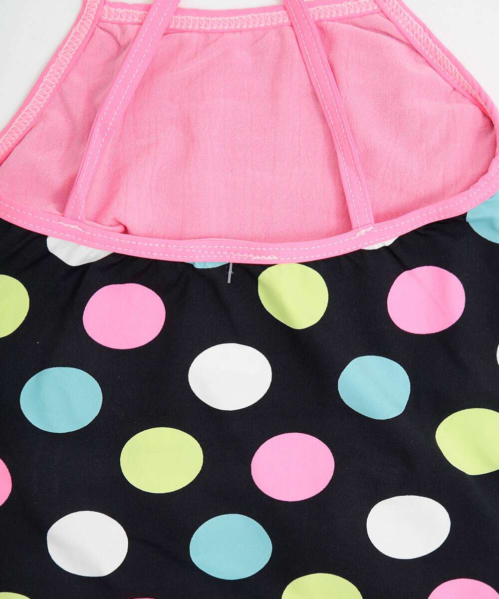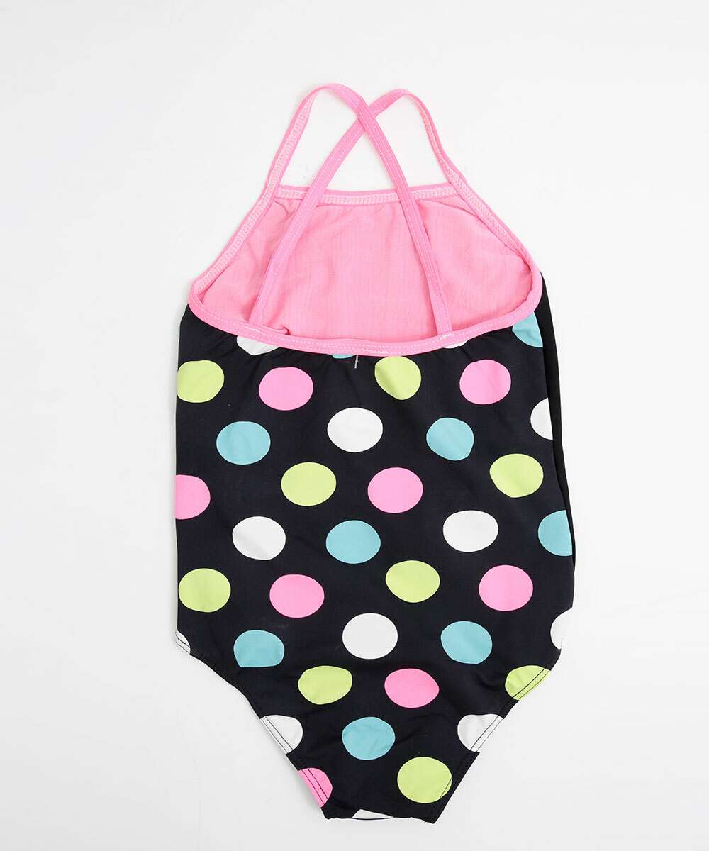 Maiô infantil, ideal para meninas de 06 até 14 anos de idade, confeccionado em tecido poliamida e elastano. Possui estampa poá e frase, decote redondo, alças finas, acabamento e costura no tom.