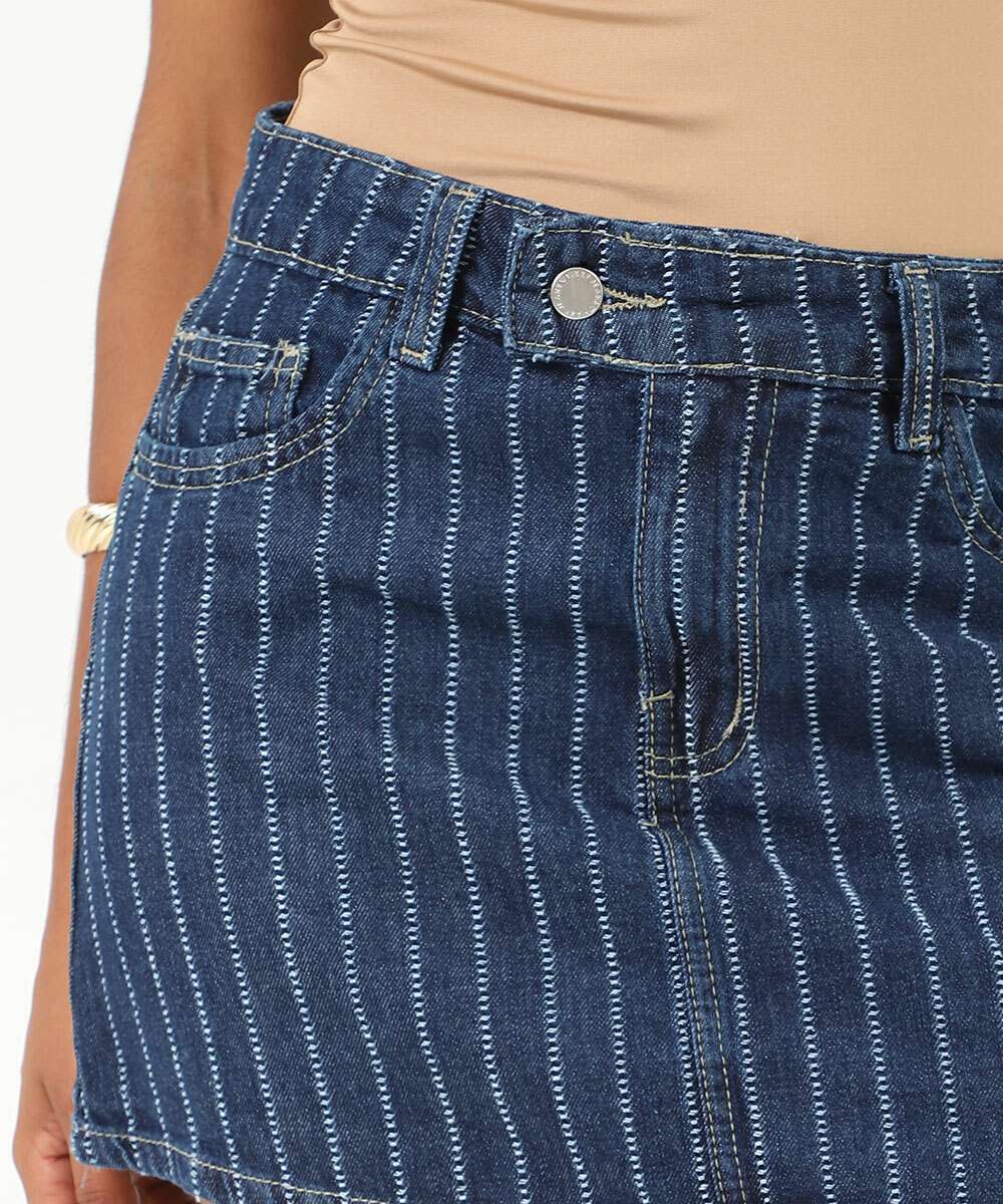 Mini Saia Jeans Feminina Listrada Vizzy Azul