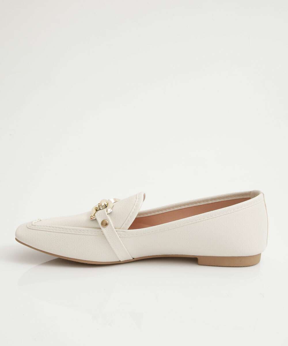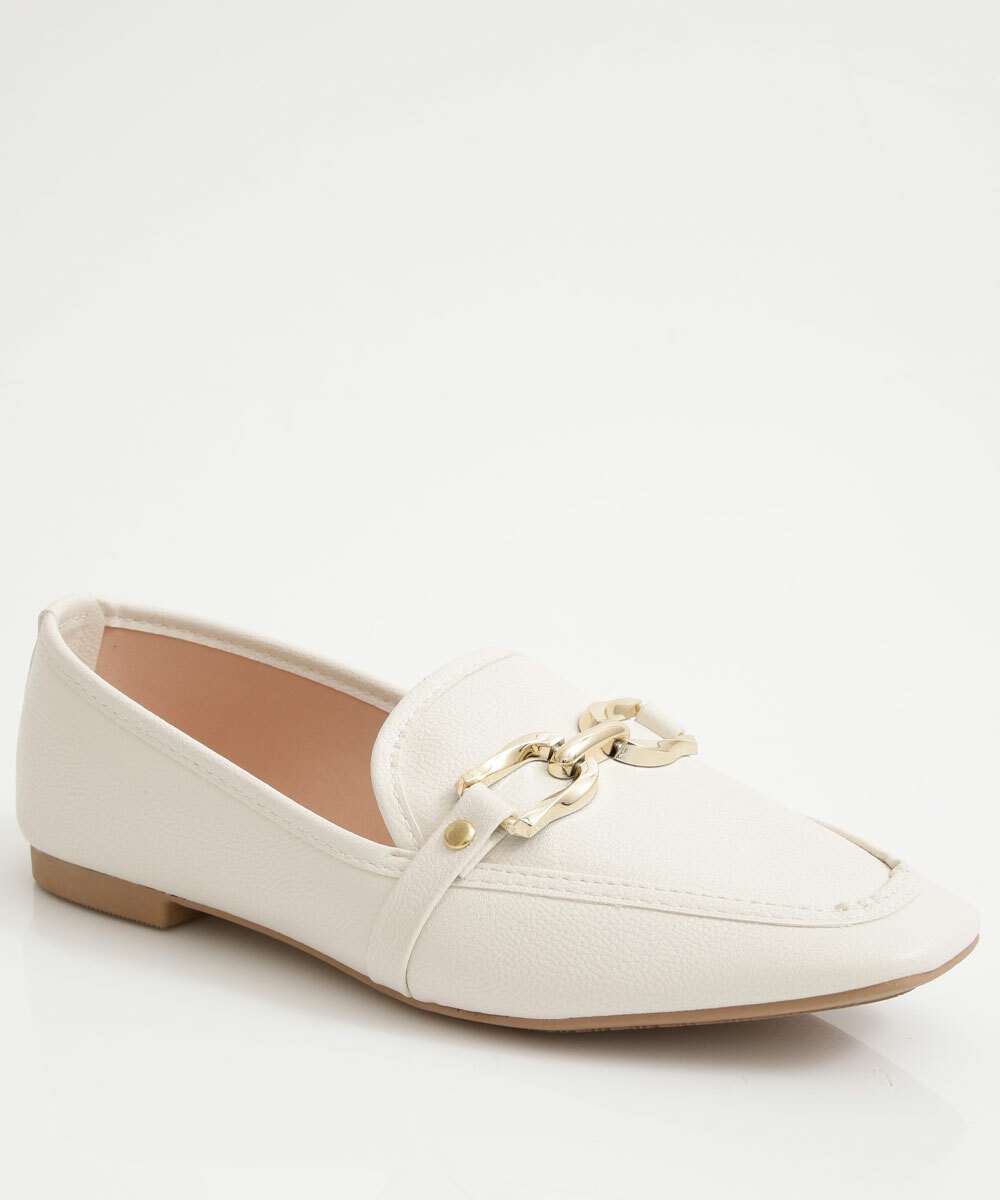 Mocassim Loafer Feminino Bico Quadrado Off White