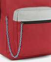 Mochila feminina confeccionada em tecido poliéster. Possui repartição única com fechamento por zíper, bolso frontal com zíper, alça de mão, alças nas costas ajustáveis, corrente decorativa, forro, acabamento e costura no tom.