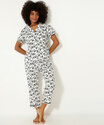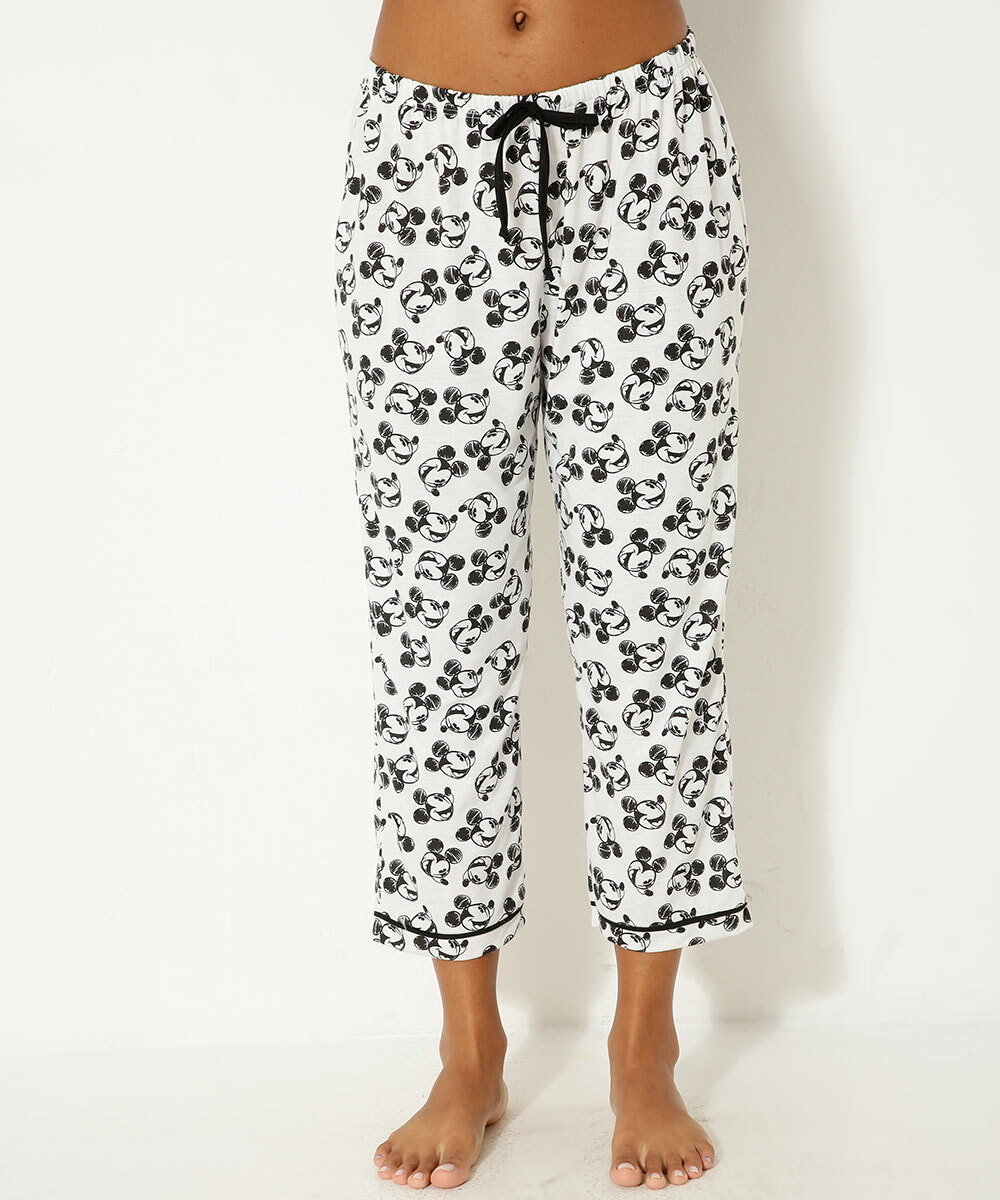 Pijama feminino modelo americano, confeccionado em malha poliéster e viscose, composto por blusa e calça com estampa do Mickey personagem da Disney. Possui blusa com gola dobrável, fechamento por botões no entremeio, manga curta, calça com cós elástico, acabamento em viés e costura no tom.