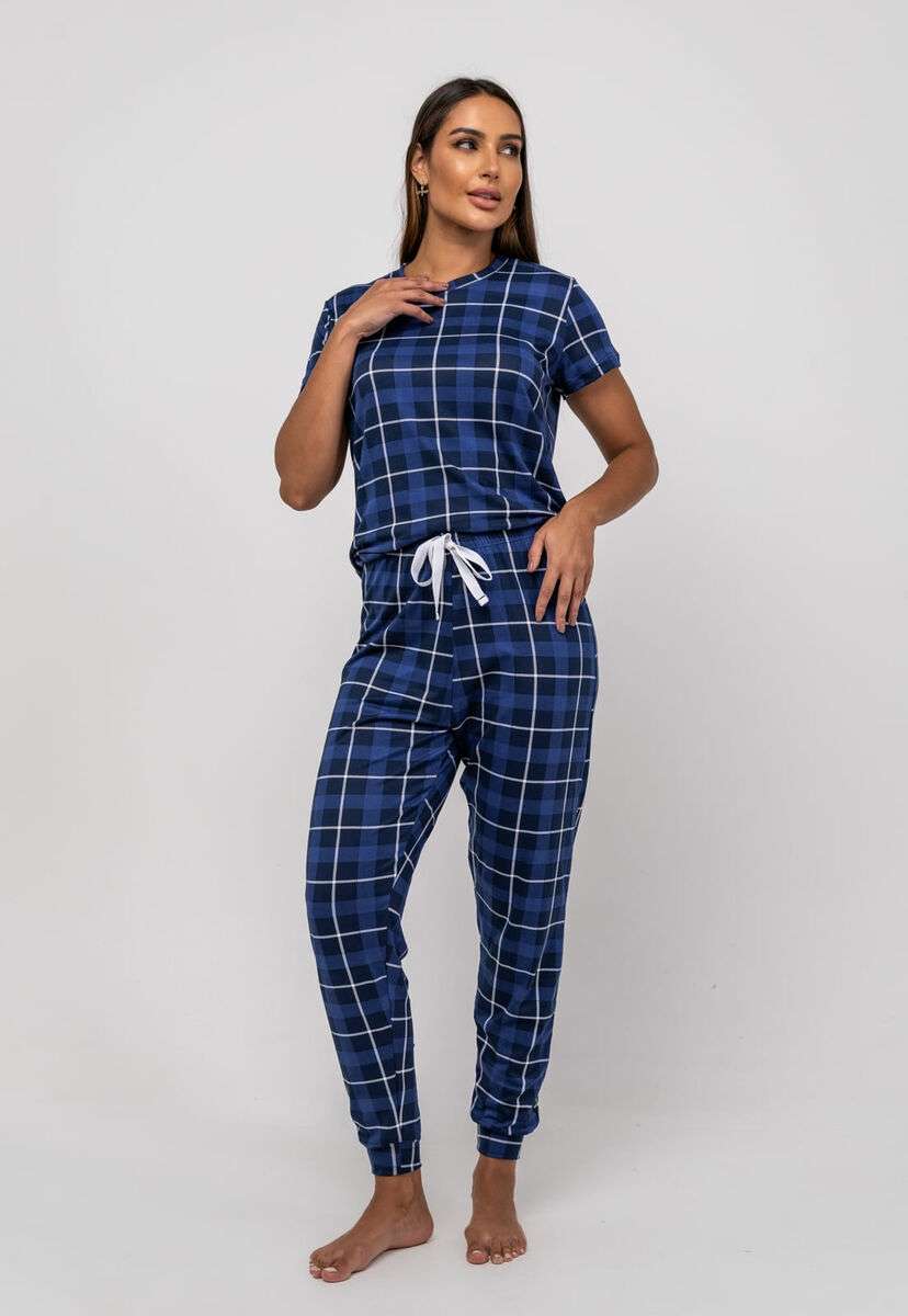 Seja para desfrutar de uma noite de sono tranquila ou para relaxar após um longo dia, os pijamas são essenciais no nosso guarda-roupa.Pensando em unir conforto e estilo, desenvolvemos este modelo exclusivo para proporcionar noites de descanso com um toque de charme.A blusa, com mangas curtas e gola redonda, é leve e confortável, enquanto a calça conta com cós elástico embutido e cadarço decorativo, garantindo um ajuste perfeito e um visual moderno.Um conjunto perfeito para quem não abre mão do bem-estar com sofisticação.Confeccionado em malha de alta qualidadeToque macioBlusa com mangas curtasGola redondaCalça com punhoMedidas da modelo: Altura 1,70cm | Busto 85cm | Cintura 60cm | Quadril 90cm | Manequim 36Modelo veste PComposição: 63% Poliéster, 34% Viscose, 3% Elastano