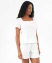 Pijama Feminino Canelado Manga Curta Marisa Off White