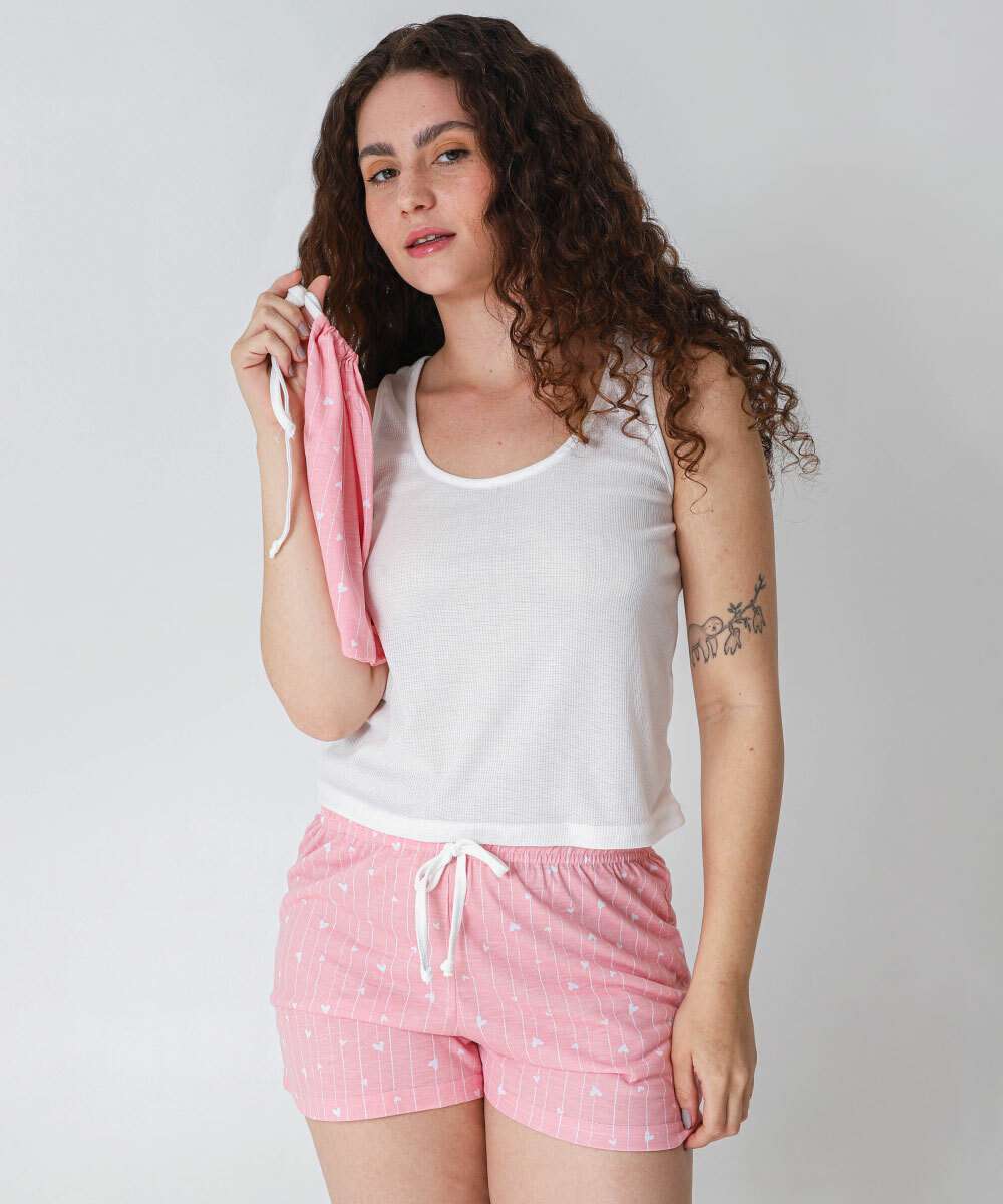 Pijama Feminino Corações Sem Manga Marisa Rosa