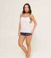 Pijama Feminino De Alcinha Meia Malha Evanilda. O Pijama Feminino de Alcinha é a escolha perfeita para quem busca frescor e estilo nos momentos de descanso. Feito em meia malha penteada 100% algodão de alta qualidade, o tecido é suave ao toque, respirável e ideal para garantir uma noite de sono tranquila. Com design feminino e sofisticado, o conjunto conta com uma blusa de alcinhas finas, oferecendo leveza e frescor, e um short confortável com cintura elástica, garantindo o ajuste perfeito.