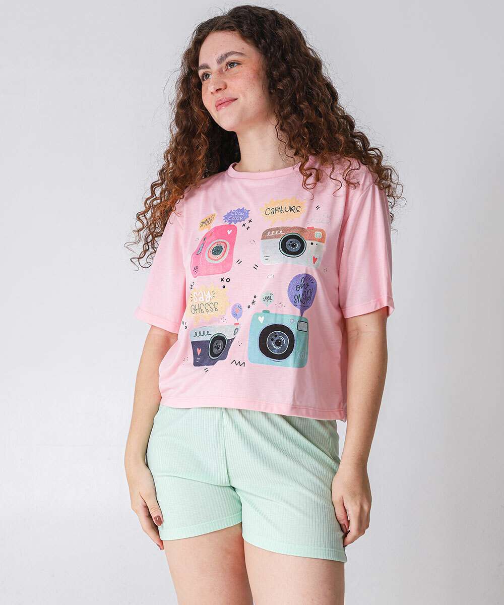 Pijama Feminino Estampa Câmeras Marisa Rosa