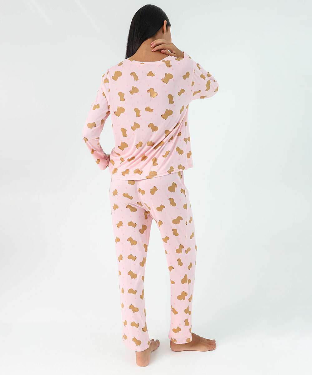 Pijama Feminino Estampa Capivara Marisa Rosa