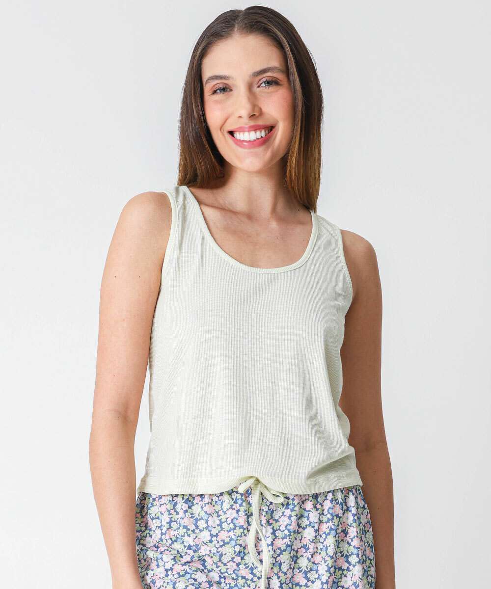 Pijama Feminino Estampa Flores Sem Manga Marisa Verde