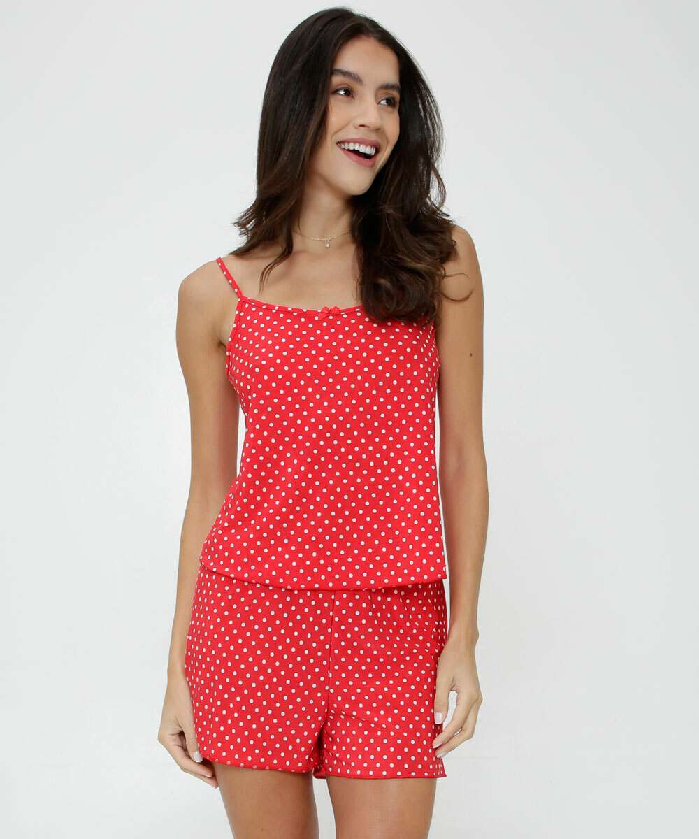 Pijama Feminino Estampa Poá Alças Finas Marisa
