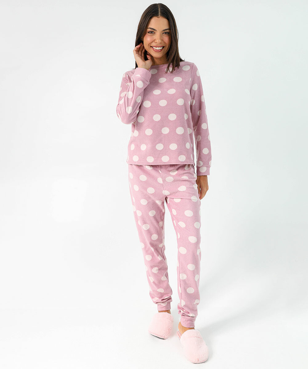 Pijama Feminino Estampa Poá Manga Longa Marisa Lilás