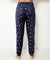 Pijama feminino, confeccionado em malha fleece, composto por blusa e calça. Possui blusa com decote redondo, estampa Hogwarts, manga longa; calça com elástico no cós, estampa estrelas, acabamento e costura no tom.