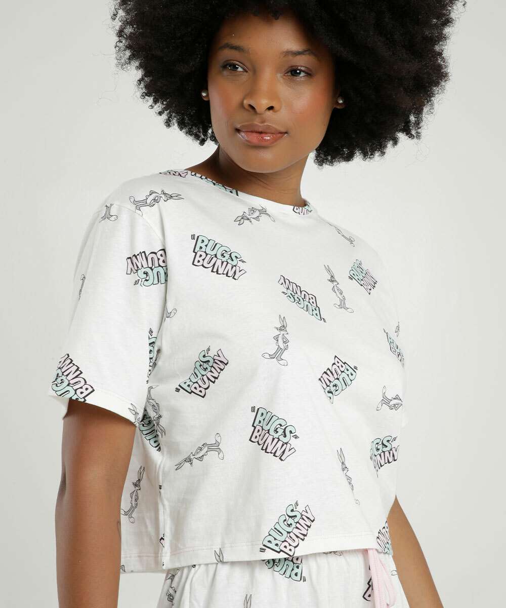 Pijama Feminino Pernalonga Manga Curta Looney Tunes