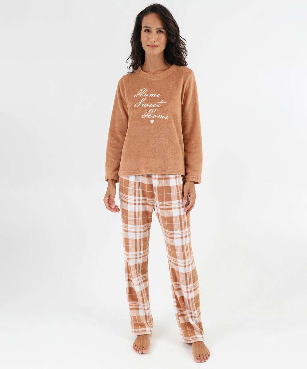 Pijama Feminino Plush Estampa Xadrez Manga Longa Marisa