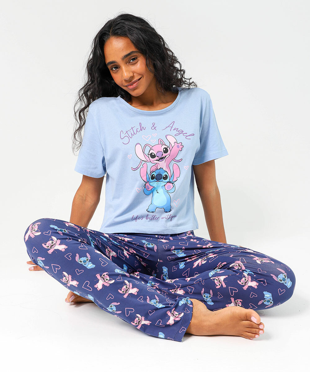Pijama Feminino Stitch & Angel Marisa Azul