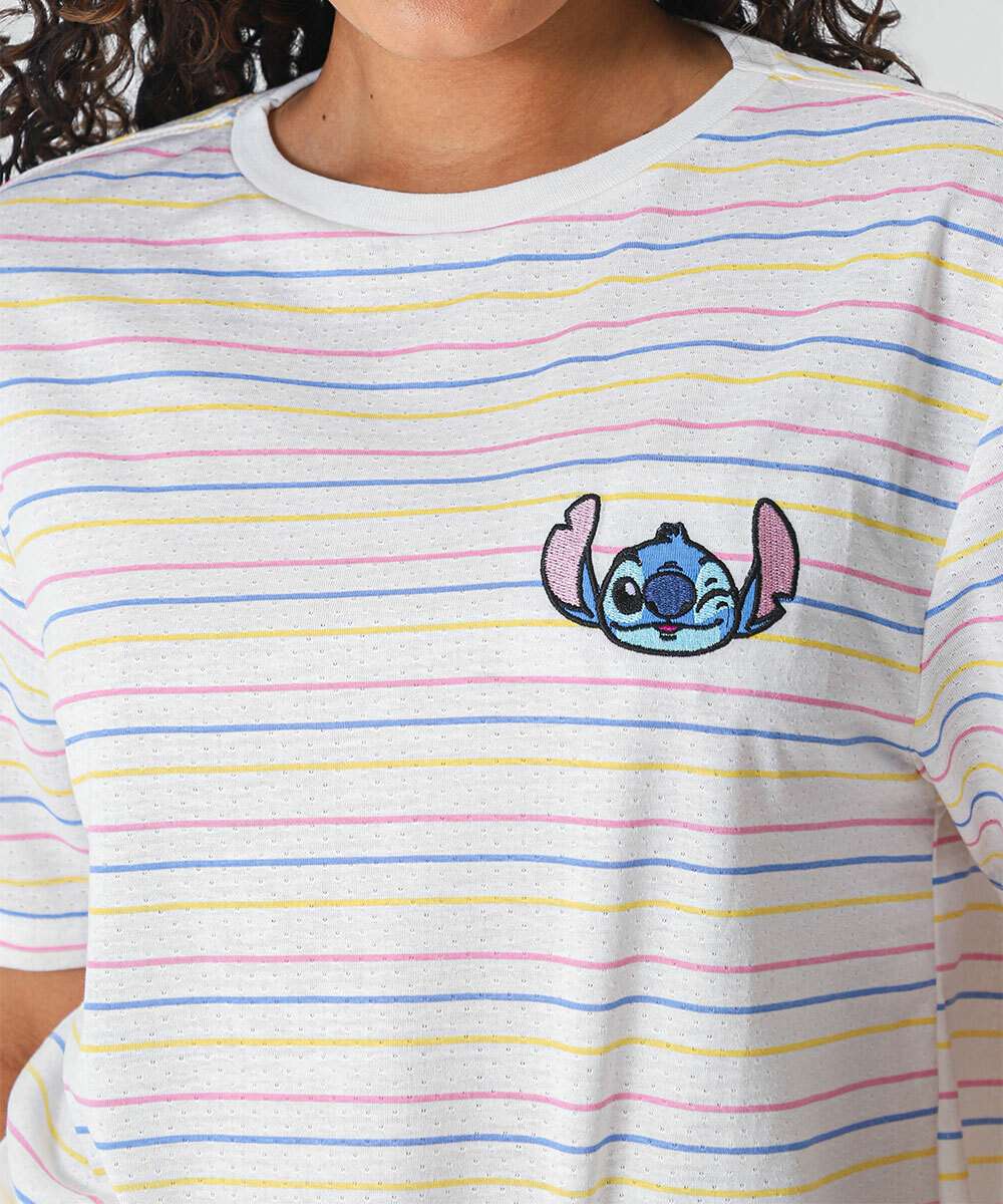 Pijama Feminino Stitch Listrado Off White