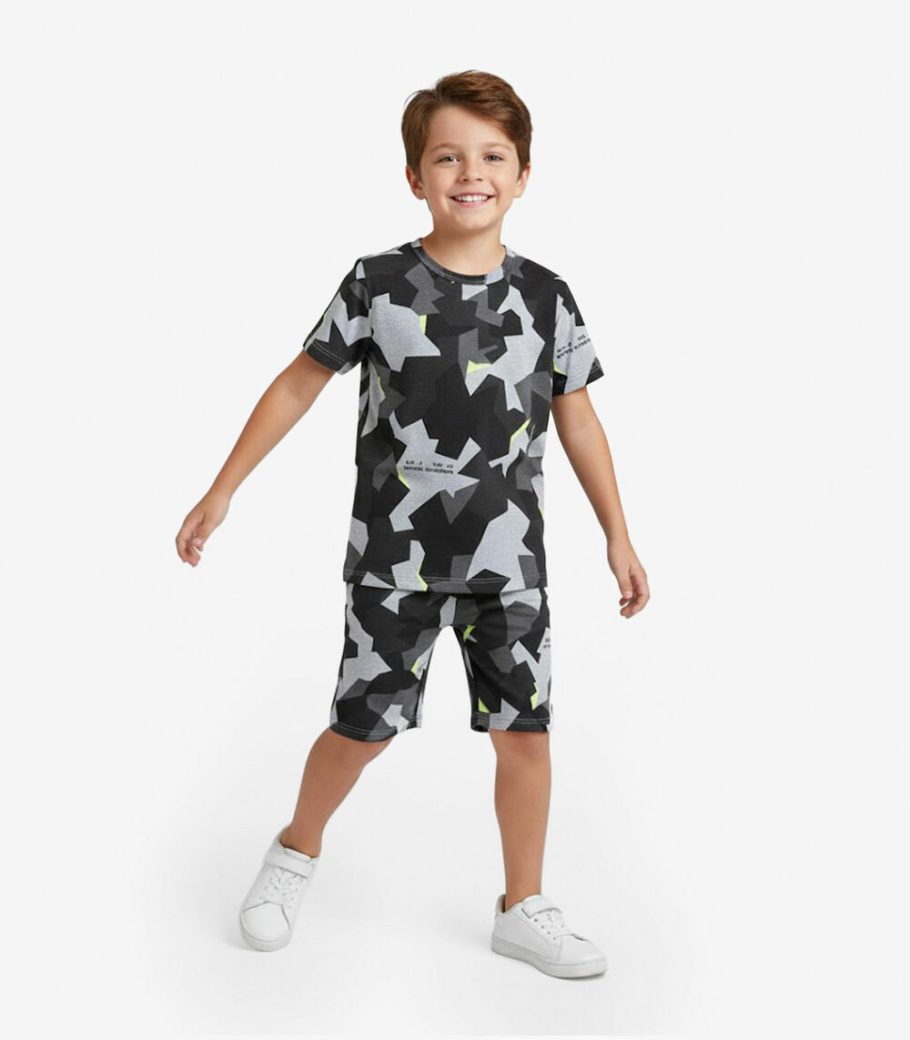 Pijama Infantil Camiseta e Bermuda Select Cinza