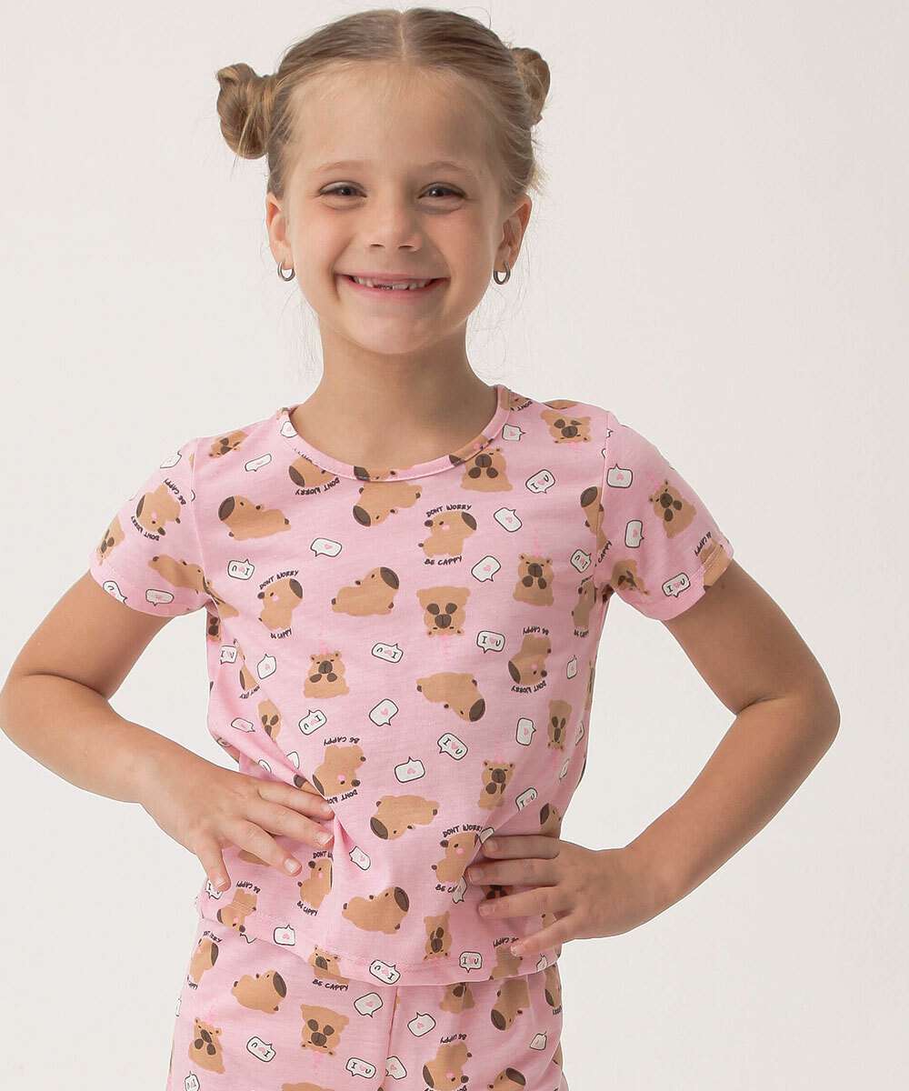Pijama Infantil Estampa Capivara Marisa Tam 4 a 12