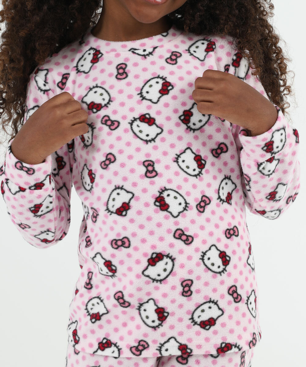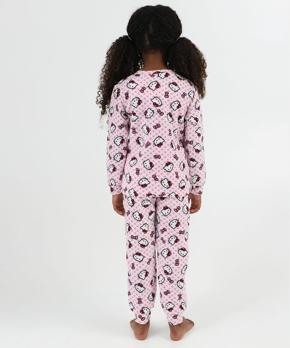Pijama Infantil Hello Kitty Manga Longa Tam 4 a 12 Rosa