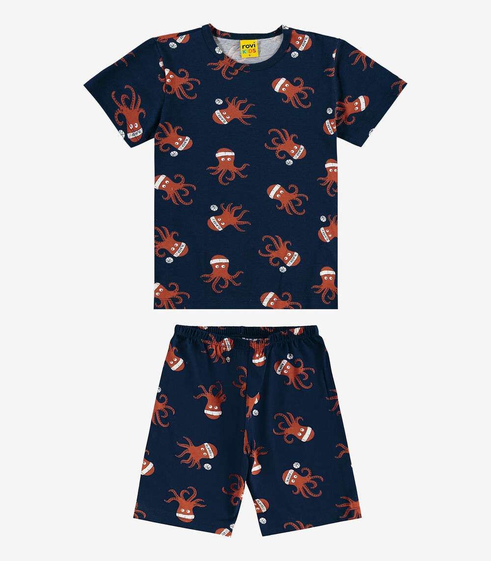 Pijama Infantil Masculino Meia Malha Rovi Kids Azul