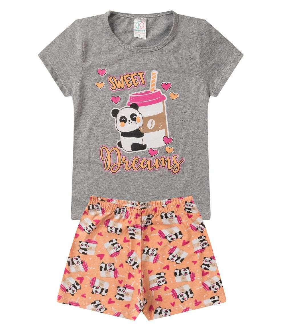 Pijama Infantil Menina Brilha no Escuro Kappes Cinza