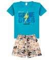 Pijama Verão Juvenil Masculino Kappes. Composto por duas peças, 1 camisa com estampa frontal com detalhes que brilham no escuro e um shorts estampado com elástico na cintura. Pijama ideal para seu pequeno ter ótimas noites de sono!